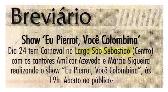 Show Eu Pierrot, Você Colombina