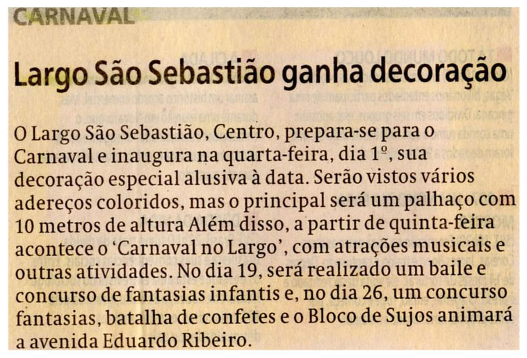 Largo São Sebastião, Carnaval, Atrações Musicais, Concurso de Fantasias, Eduardo Ribeiro
