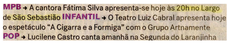 Fátima Silva, Largo São Sebastião, Teatro Luiz Cabral, Lucilene Castro