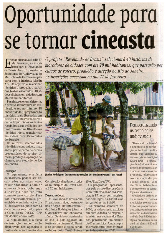 Oportunidade, Cineasta, Projeto, Revelando os Brasis, Ministério da Cultura, Rio de Janeiro, Inscrições