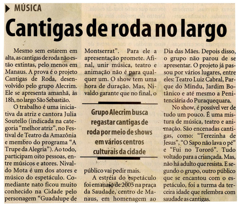 Show, Música, Projeto Cantigas de Roda, Largo São Sebastião, Júlia Soutello