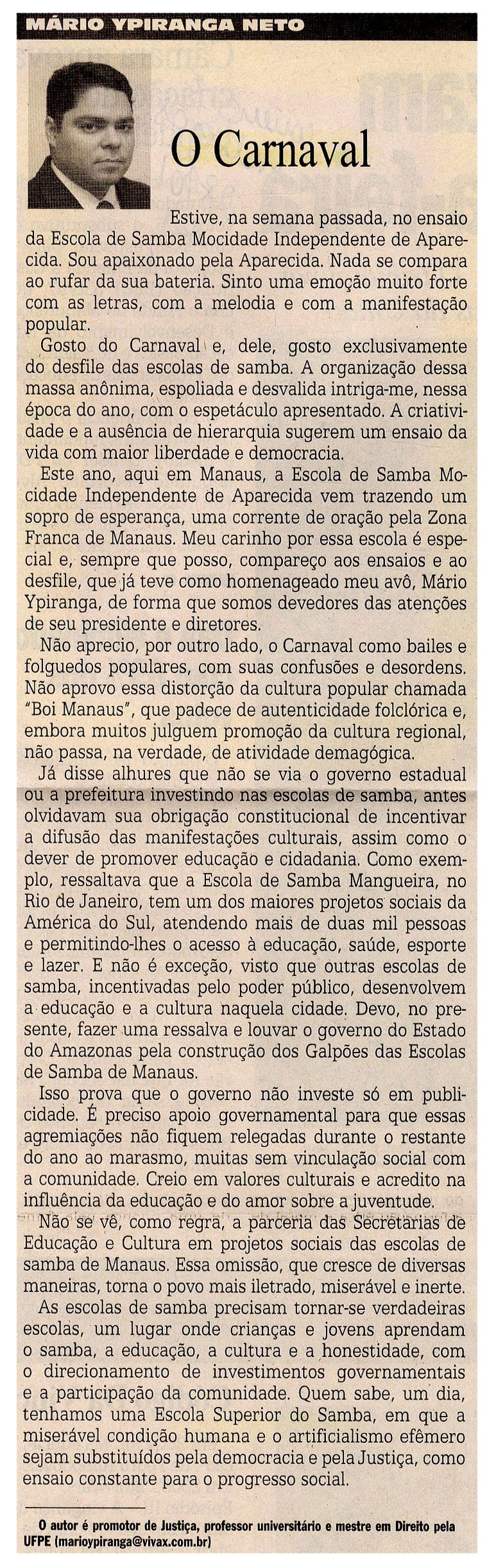 Carnaval, Mocidade Independente de Aparecida, Samba, Boi Manaus, Zona Franca de Manaus, Mário Ypiranga Neto
