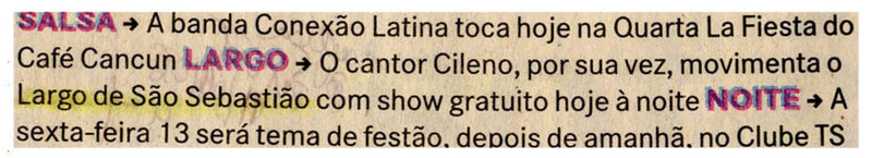 Salsa, Banda Conexão Latinha, Café Cancun, Cileno, Largo São Sebastião, Club TS