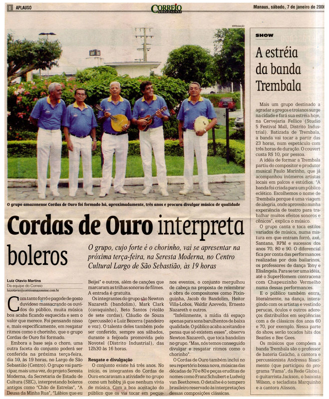 Cordas de Ouro, Seresta Moderna, Largo, Show, Música, Banda Trembala, Divulgação