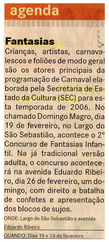 Fantasias, SEC, Largo São Sebastião, Carnaval