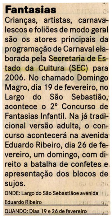 Fantasias, SEC, Largo São Sebastião, Carnaval