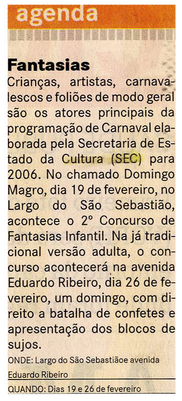 Fantasias, SEC, Largo São Sebastião, Carnaval
