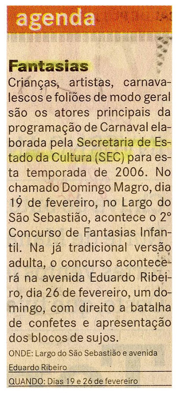 Fantasias, SEC, Largo São Sebastião, Carnaval