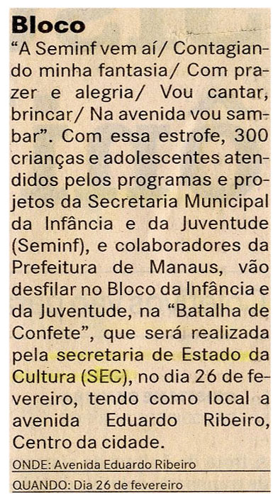 Seminf, Prefeitura de Manaus, SEC, Bloco