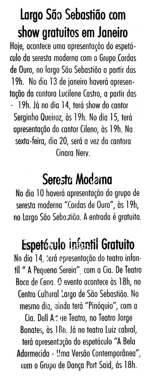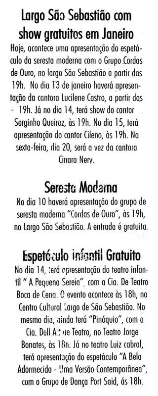 Largo São Sebastião, Música, Espetáculos, Lucilene Castro, Seresta Moderna, Teatro Infantil