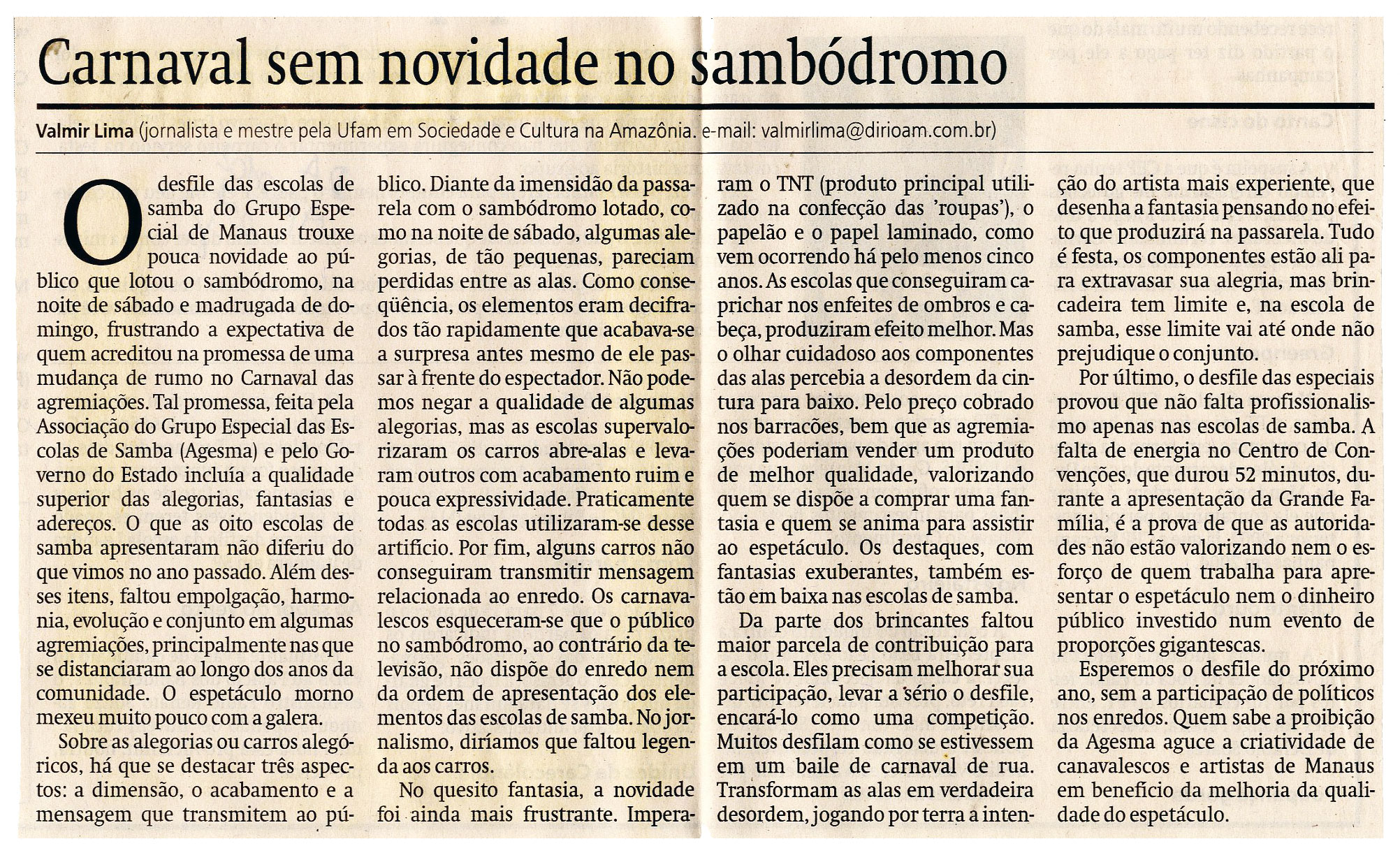 Carnaval, Sambódromo, Desfile, Valmir Lima, Jornalista