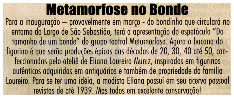 Inauguração, Largo São Sebastião, Grupo Metamorfose