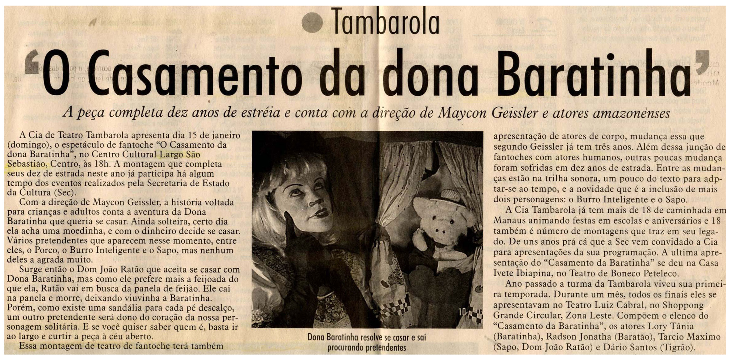 Peça, Cia de Teatro Tambarola, Largo São Sebastião, Sec