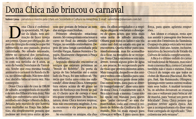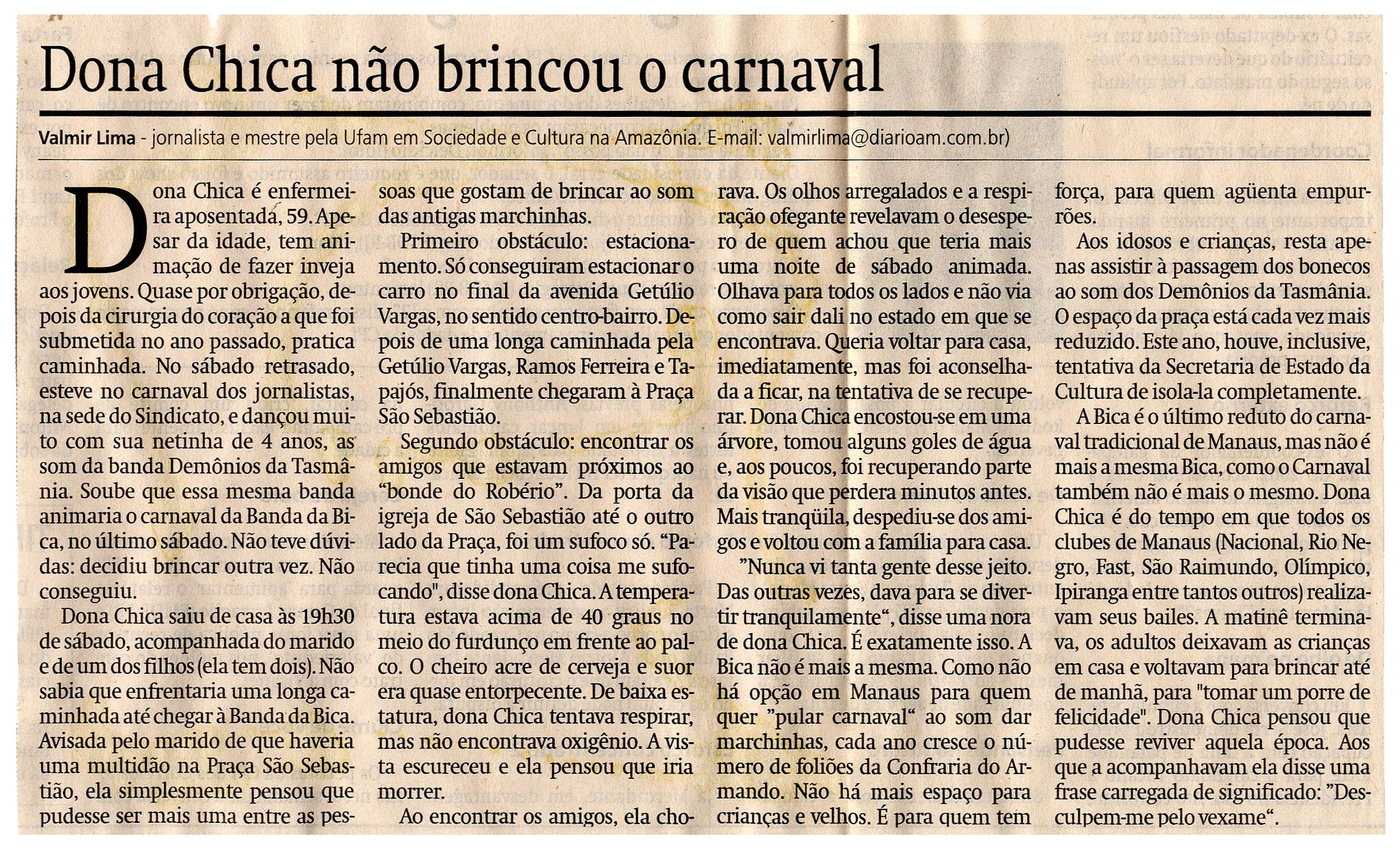 Carnaval, Banda da Bica, Valmir Lima, Jornalista