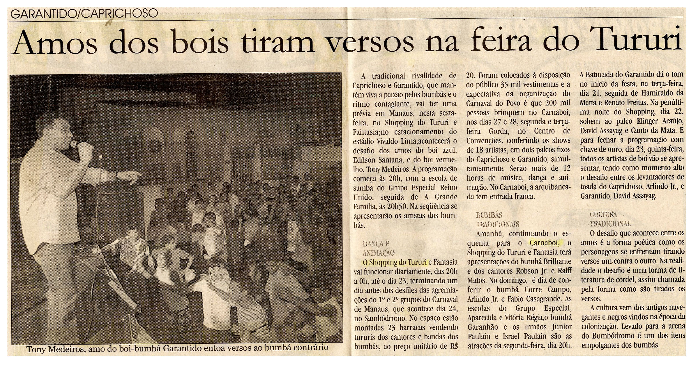Feira do Tururi, Tony Medeiros, Garantido, Caprichoso, Carnaboi