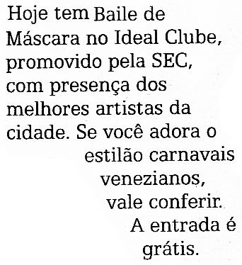 Baile de Máscara, Carnaval, Ideal Clube, Sec