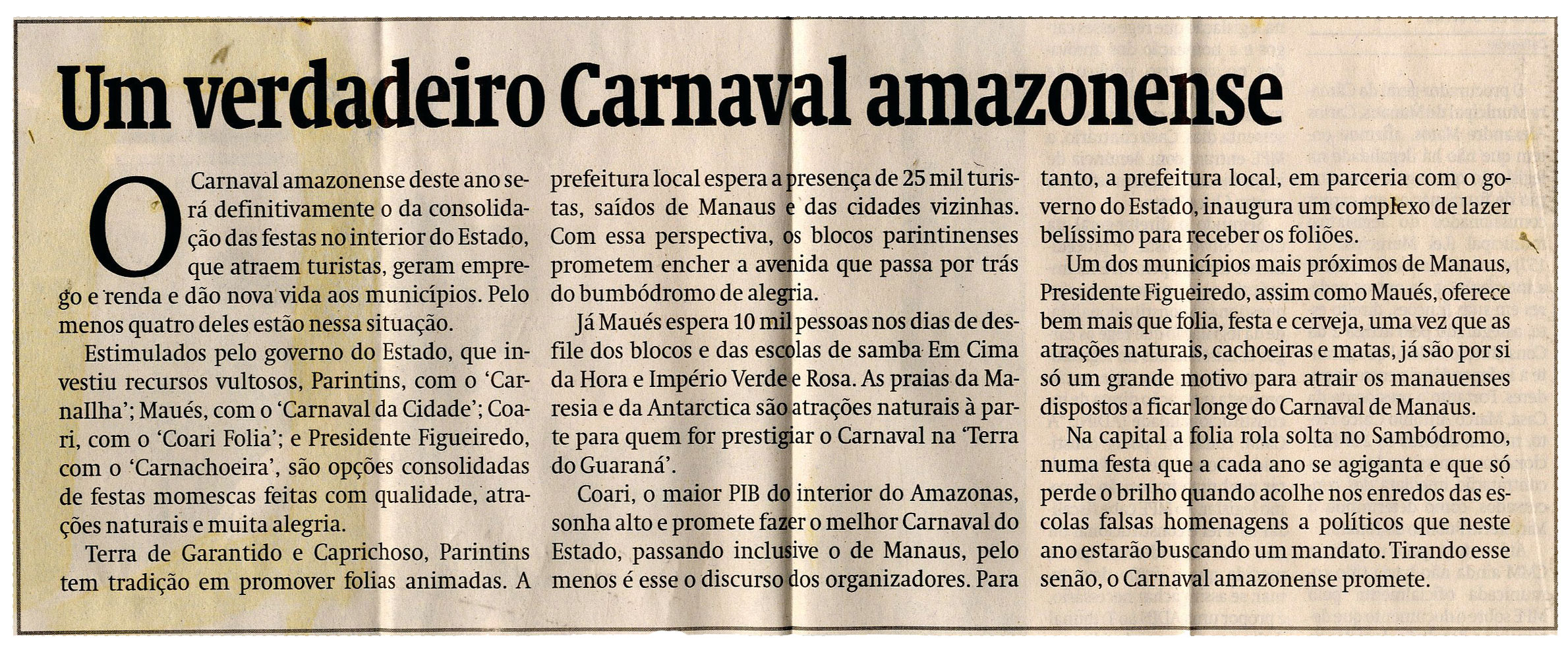 Carnaval, Governo do Estado, Parintins, Maués, Coari, Presidente Figueiredo