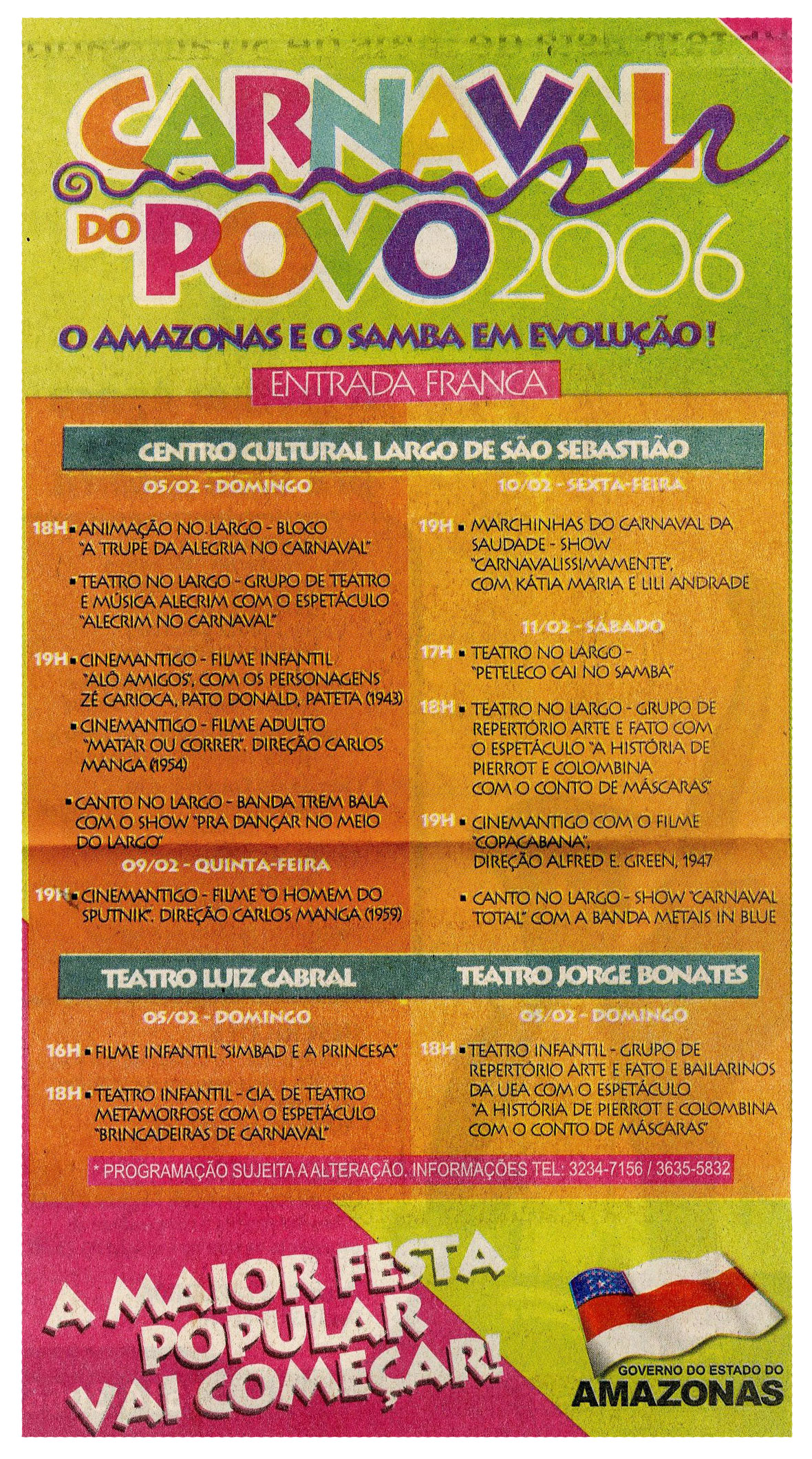 Carnaval, Largo São Sebastião, Programação, Teatro Luiz Cabral, Jorge Bonates