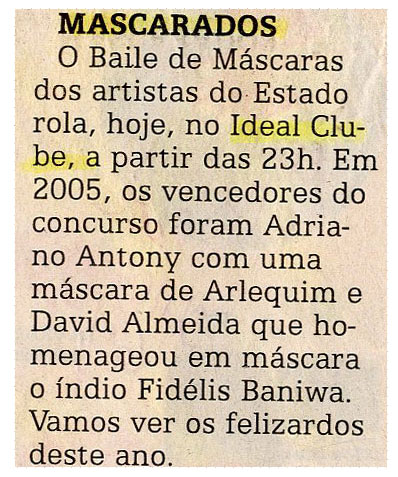 Baile de Máscaras, Ideal Clube, Carnaval, Vencedores