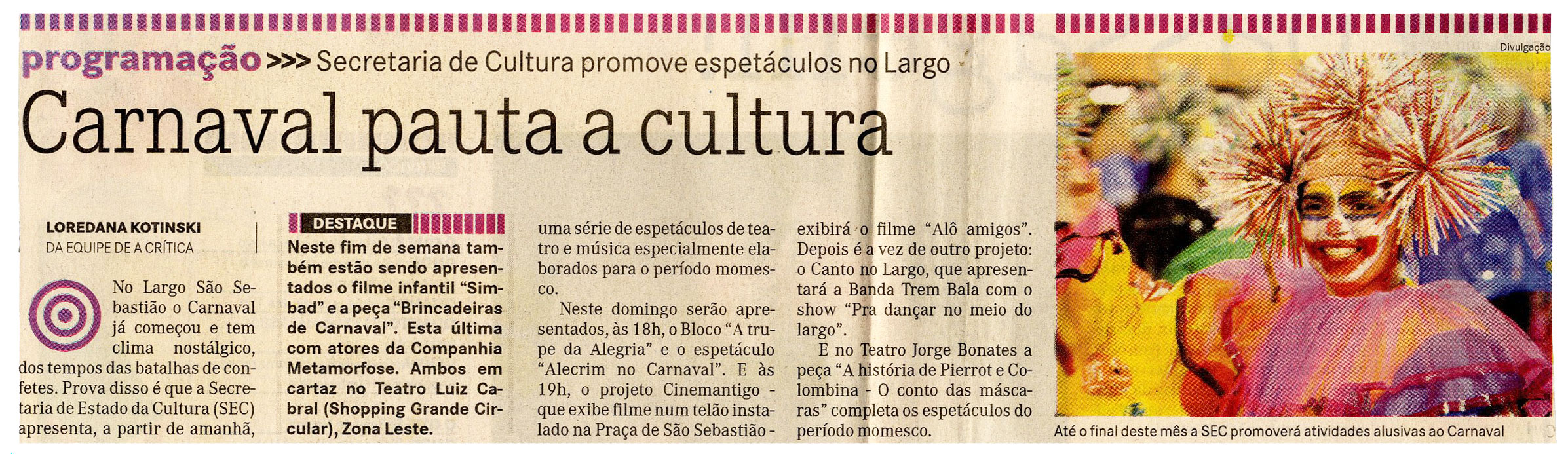 Programação, Sec, Largo São Sebastião, Carnaval, Teatro Jorge Bonates