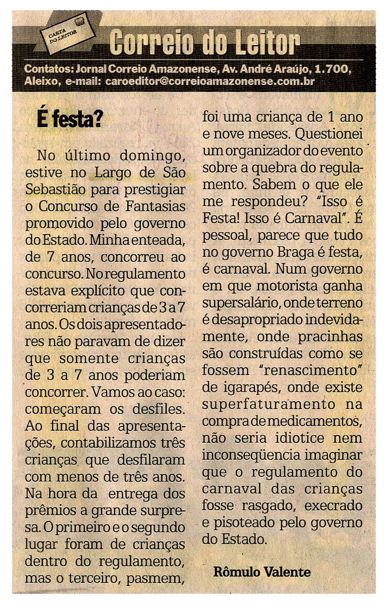 Concurso de Fantasia, Largo, Rômulo Valente, Leitor