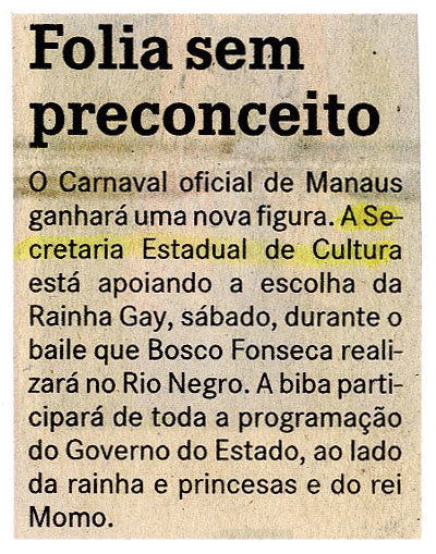 Sec, Carnaval, Rainha Gay, Rio Negro, Programação