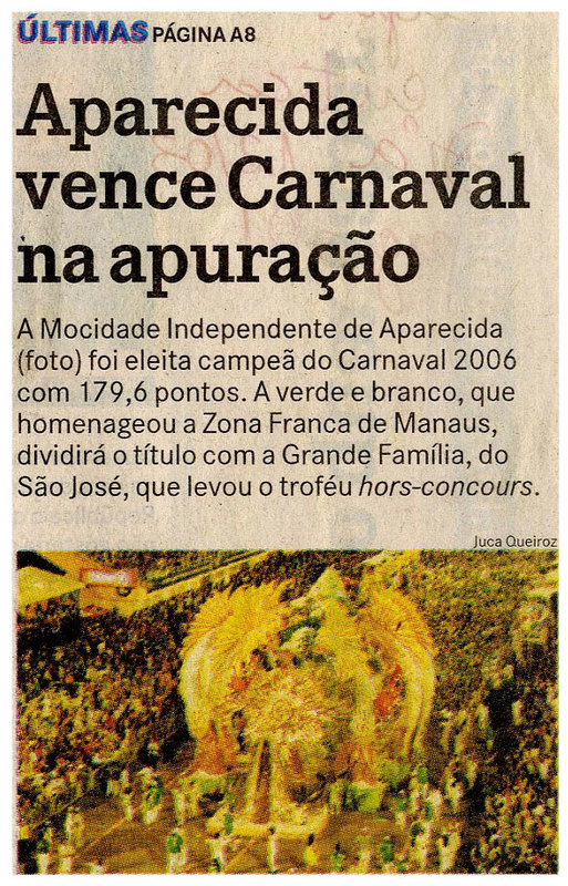 Aparecida vence carnaval na apuração