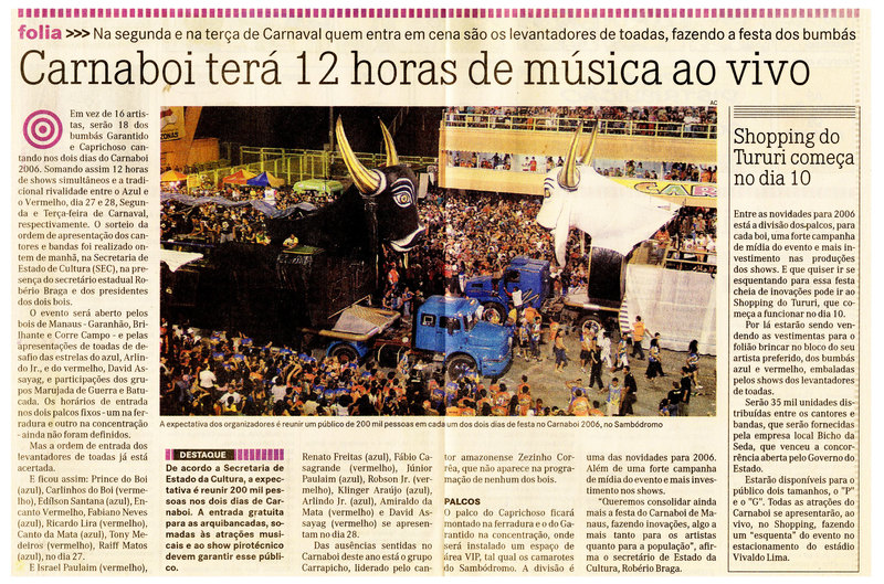 Carnaval, Carnaboi, Toadas, Bumbás, Garantido, Caprichoso, Shopping do Tururi