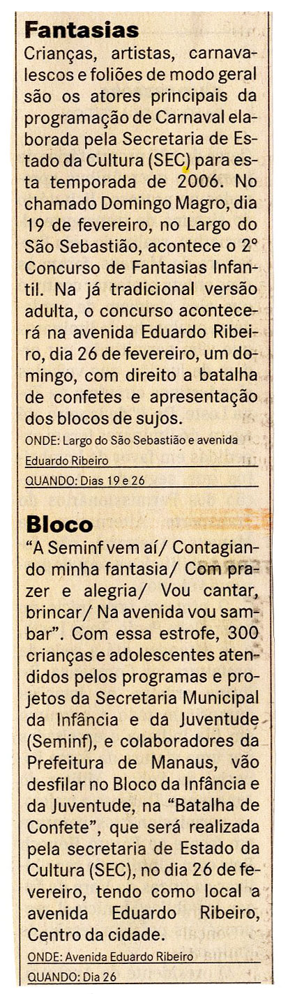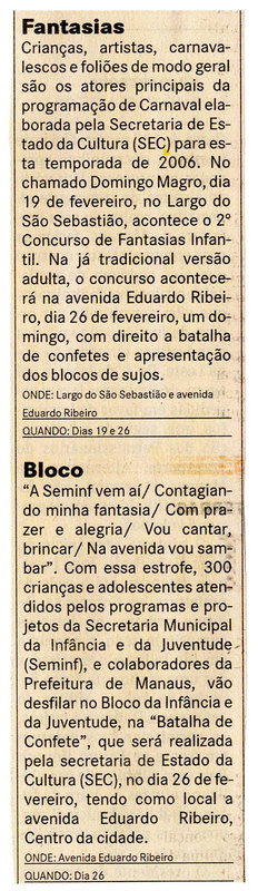 Programação de Carnaval, Sec, Largo São Sebastião, Concurso de Fantasia, Bloco, Seminf