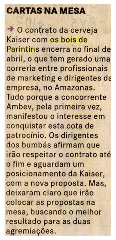 Contrato, Kaiser, Festival de Parintins, Propostas, Ambev