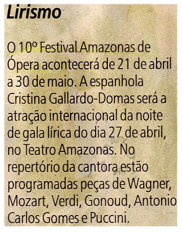 10º Festival de Ópera, Crisitna Gallardo, Atração, Teatro Amazonas, Gala Lírica