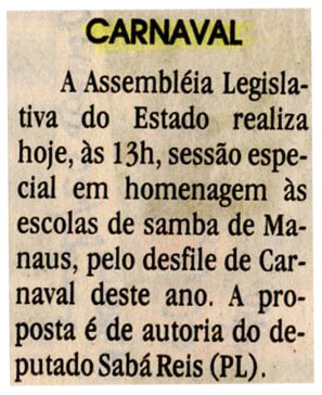 Assembleia Legislativa, Carnaval, Homenagem