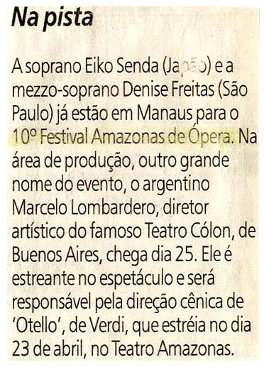 Eiko Senda, Denize Freitas, 10º Festival de Ópera, Espetáculo, Teatro Amazonas