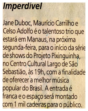 Shows, Projeto Pixinguinha, Largo São Sebastião, Música Popular
