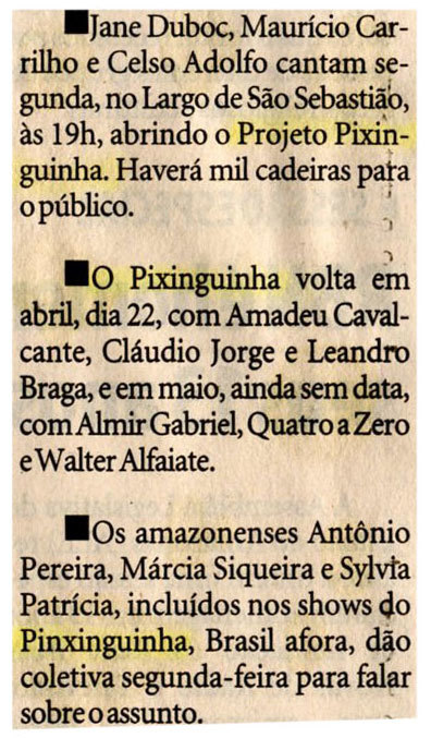 Projeto Pixinguinha, Shows, Márcia Siqueira, Sylvia Patrícia