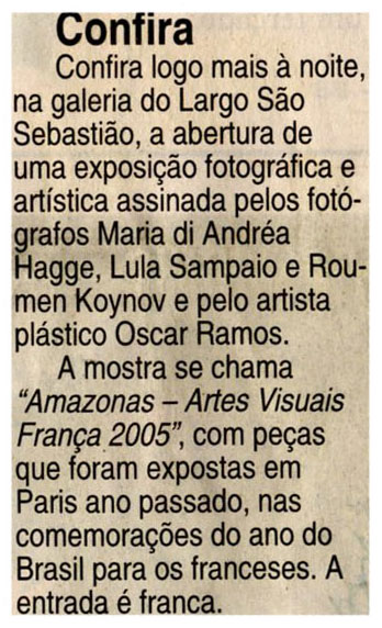 Galeria do Largo, Exposição, Maria di Andréa, LulaSampaio, Oscar Ramos, Fotografia