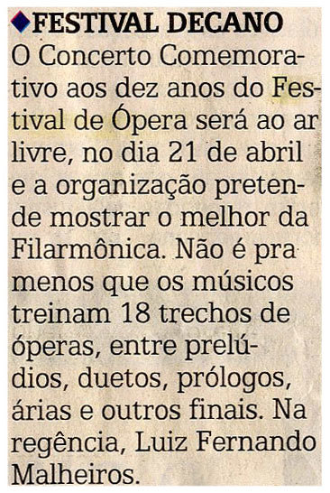 Concerto, Comemoração, Festival de Ópera, Regência, Luiz Fernando Malheiros