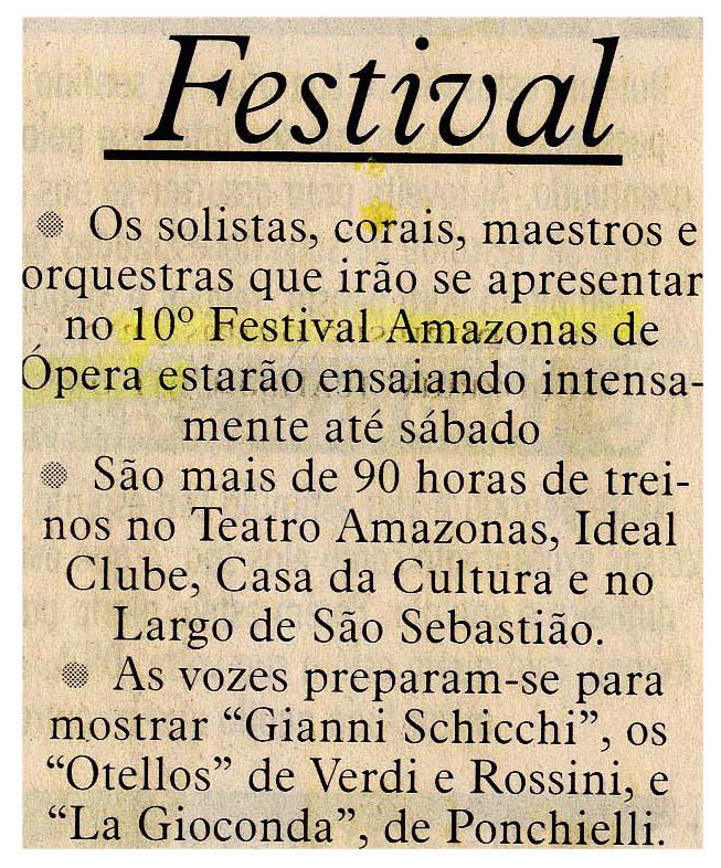Festival de Ópera, Teatro Amazonas, Ideal Clube, Casa da Cultura, Largo São Sebastião