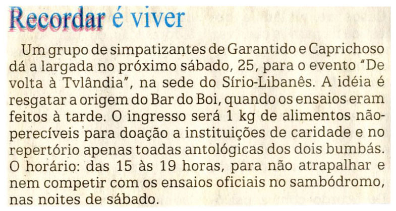 Caprichoso, De Volta à Tvlândia, Bar do Boi, Sambódromo