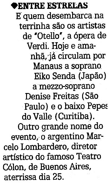 Artistas, Otello, Ópera, Eiko Senda, Denise Freitas, Pepes do Valle, Marcelo Lombardero