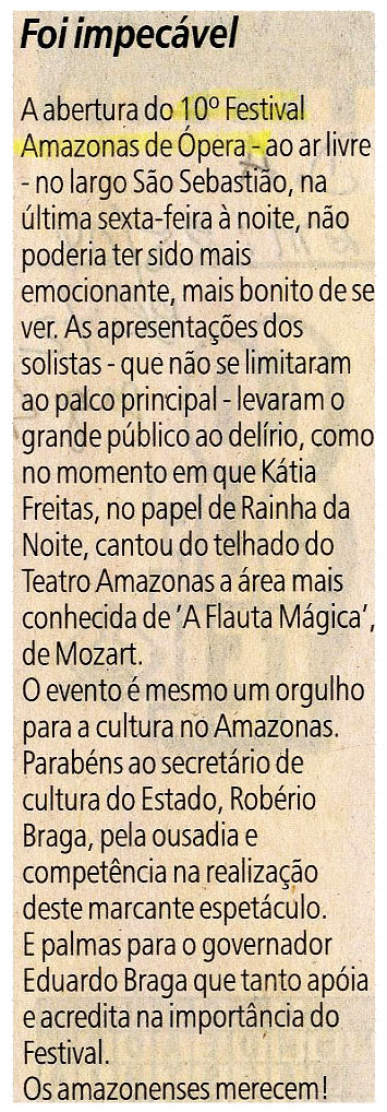 10º Festival de Ópera, Largo São Sebastião, Apresentação, Kátia Freitas, Teatro Amazonas, Robério Braga, Eduardo Braga