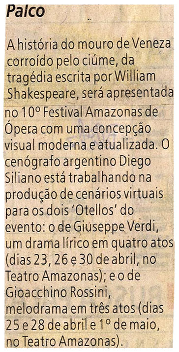 Festival de Ópera, Diego Siliano, Teatro Amazonas