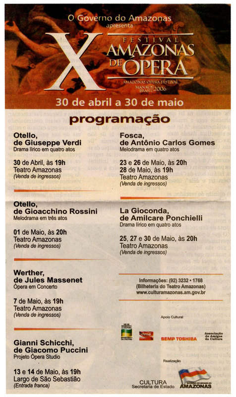 Festival de Ópera, Governo do Amazoans, Programação, Sec