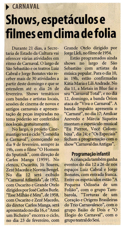 Shows, Espetáculo, Filme, Carnaval, Sec, Largo São Sebastião