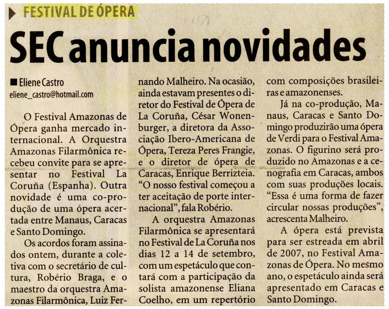 Sec, Novidades, FAO, Festival, Eliene Castro
