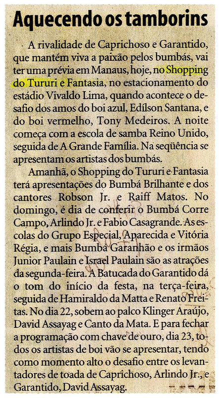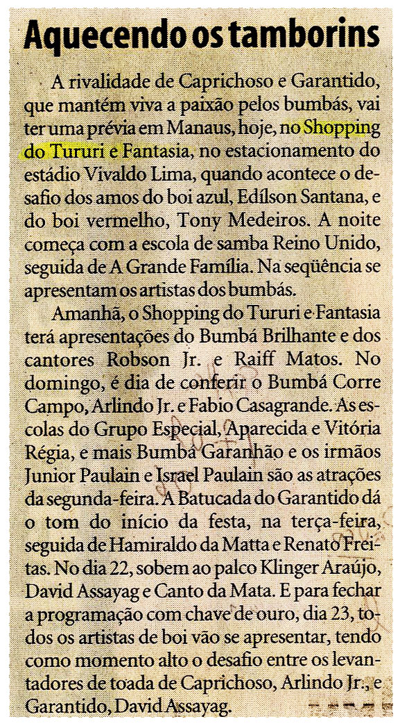 Caprichoso, Garantido, Shopping do Tururi, Vivaldo Lima