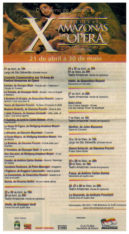 Festival, Ópera, Amazonas, Programação