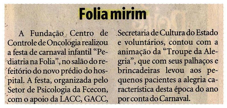 Carnaval Infantil, Fcecon, Pediatria na Folia, Sec