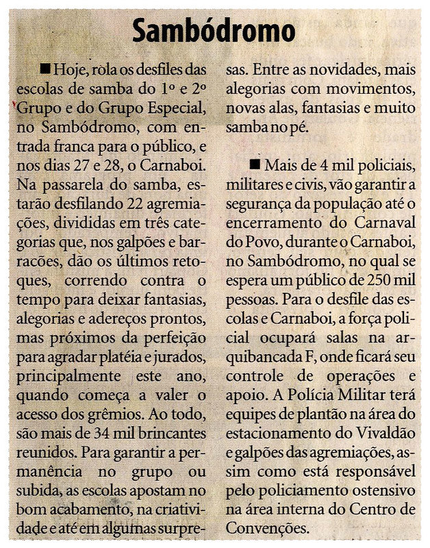 Sambódromo, Grupo Especial, Carnaboi, Carnaval, Samba