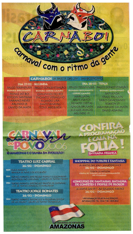 Carnaval, Carnaboi, Teatro Luiz Cabral, Teatro Jorge Bonates, Programação